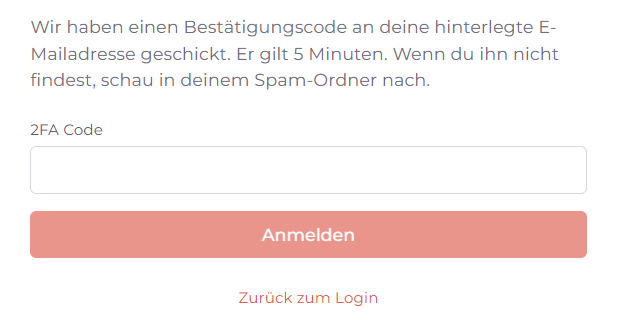 Der Code wird an deine hinterlegte E-Mailadresse geschickt und ist 5 Minuten gültig.